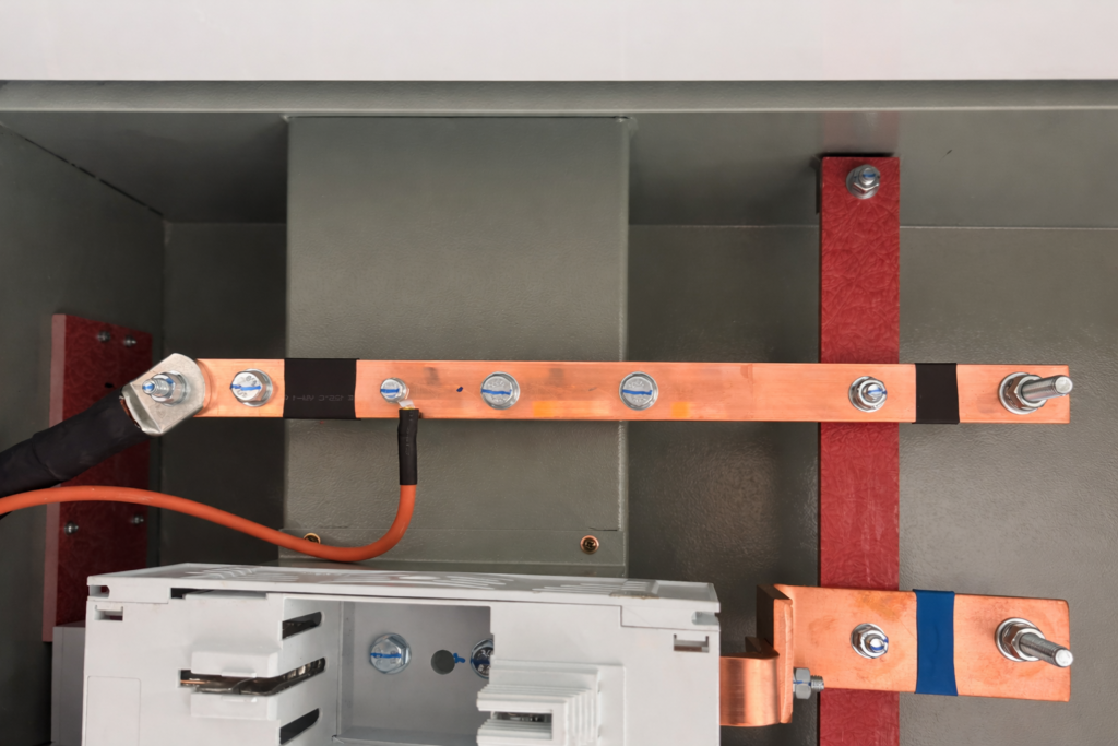 Unlike cables, copper busbars provide a compact, rigid, and low-resistance path for current flow. They are commonly used in main switchboards, distribution boards, and control panels to connect incoming supply lines to outgoing circuits, protection devices, and meters. The size and thickness of the busbar depend on the current rating and fault level requirements of the installation.